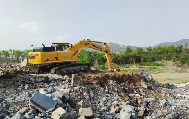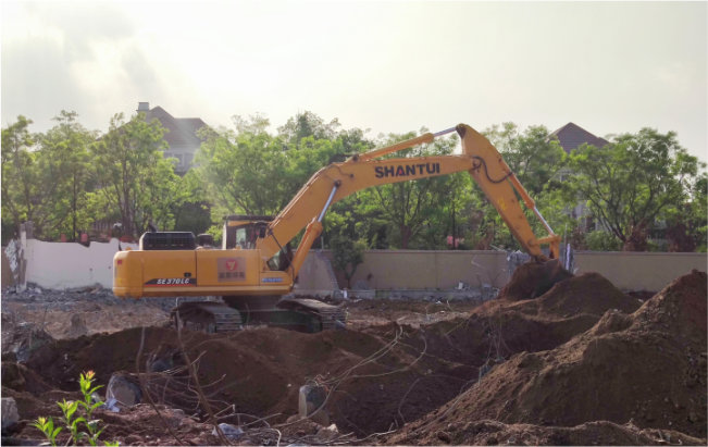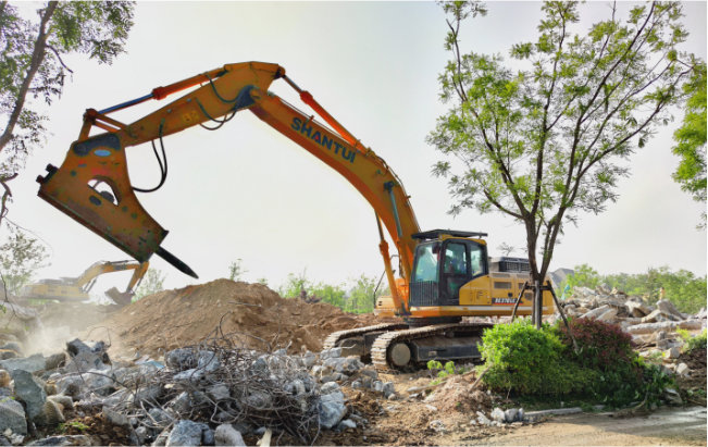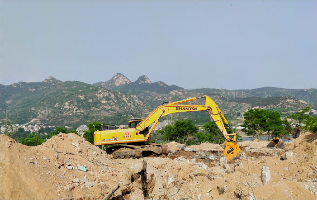 山東某地違章建筑群拆除施工,施工工期短、進度急,二十四小時連續作業,山推數臺挖掘機參與施工。多種品牌挖掘機同臺作業,山推挖掘機機以動力足、質量好、效率高、故障率低得到施工方認可。