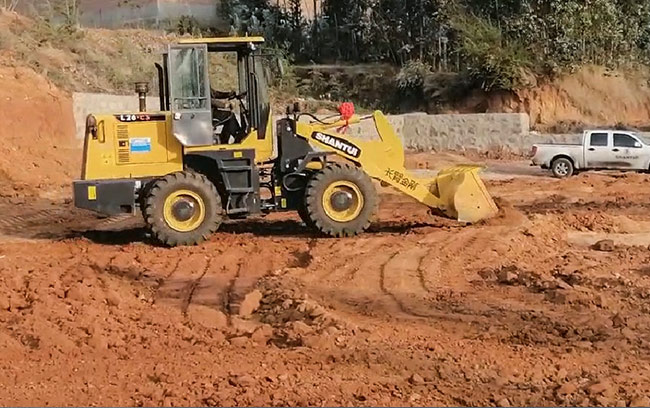 某廠房建筑工地進行土方鏟裝,地面平整作業,整機靈活性高,油耗低,燃油經濟性好,工作效率高。